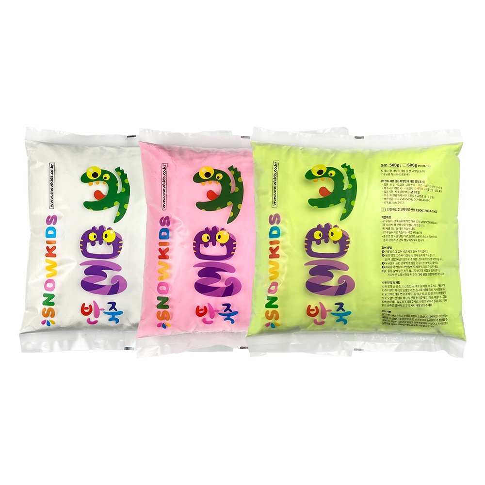 -소근육 발달과 창의력 향상을 돕는 모래놀이 -가루날림이 적고 물에 잘 녹아 뒷정리가 편리 -부드럽게 잘 뭉쳐지고 모양틀에 잘 찍혀 원하는 것을 만들기 용이함 -굳거나 마르지 않아 반복적으로 사용이 가능 (뚜껑이 있는 통이나 공기가 통하지 않도록 보관) -블랙라이트 놀이 가능 (블루, 화이트 제외) -침, 땀, 음료 등으로 인한 오염 시 해당 부분을 버릴 것