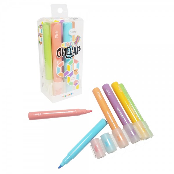 여섯 색깔의 마카와 한개의 캡으로 아이들이 입으로 넣을 걱정이 없을 뿐더러 보관 또한 용이함